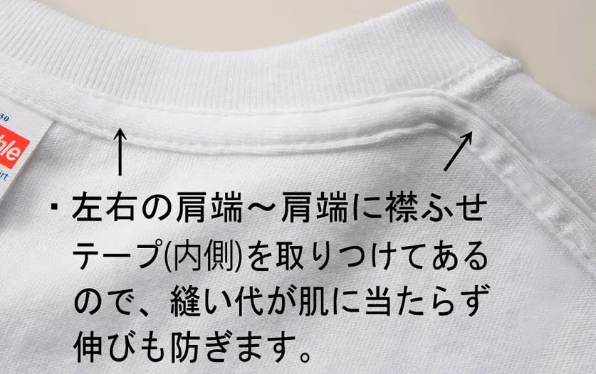 何度着てもヨレないよう首リブにはダブルステッチを採用