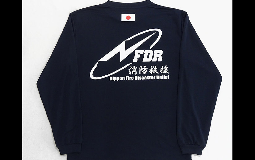 左胸日本消防救援プリント。背中に日の丸&NFDRプリント。4.4オンスの軽い着心地で吸水速乾性に優れた素材