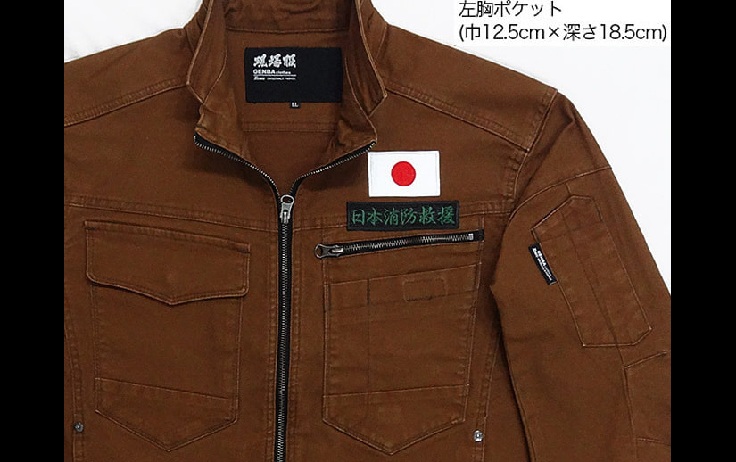 立体的な設計で動きやすいNFDR日の丸ワッペン付きワークウエアー